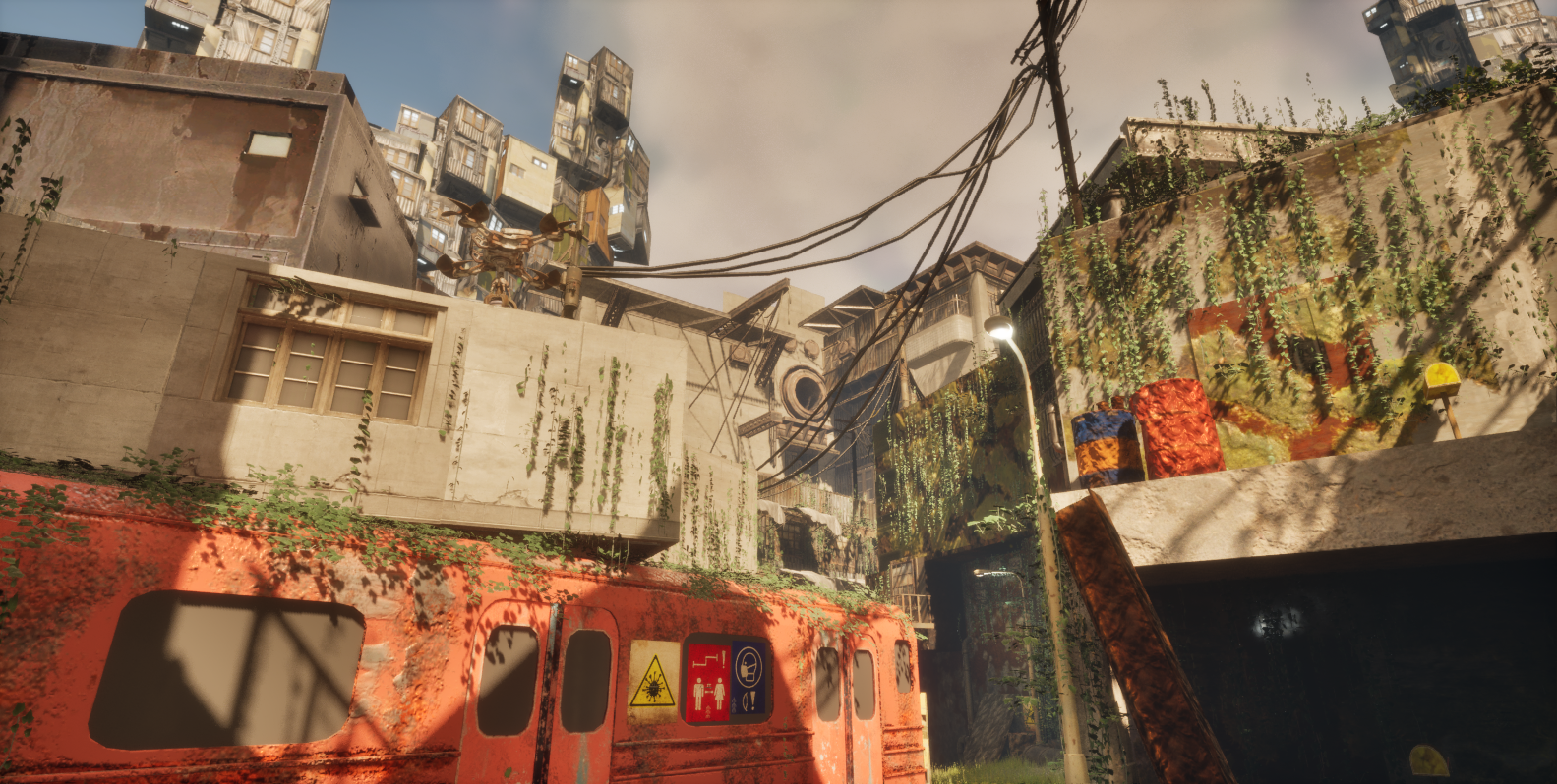 In Post Apocalypse, you slip into the role of a robot postman whose final task is to deliver three letters to the correct address. However, there is no sign of life in the city. The twist with the letters is that the inhabitants use an unknown writing system. You have to deduce the meanings from posters, drawings, and social context, and at the same time you can learn about the history of the city.